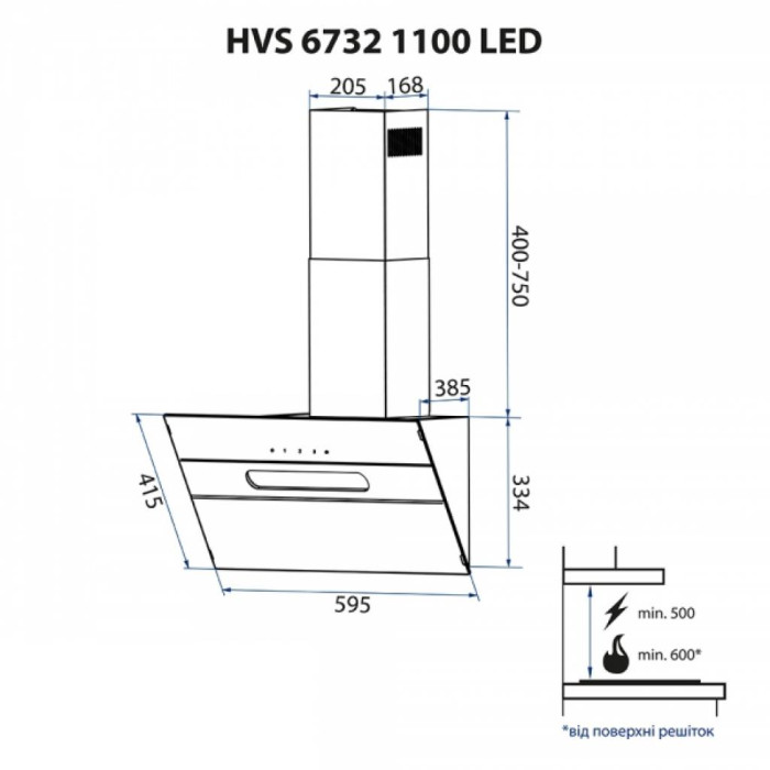 Вытяжка кухонная Minola HVS 6732 BL 1100 LED