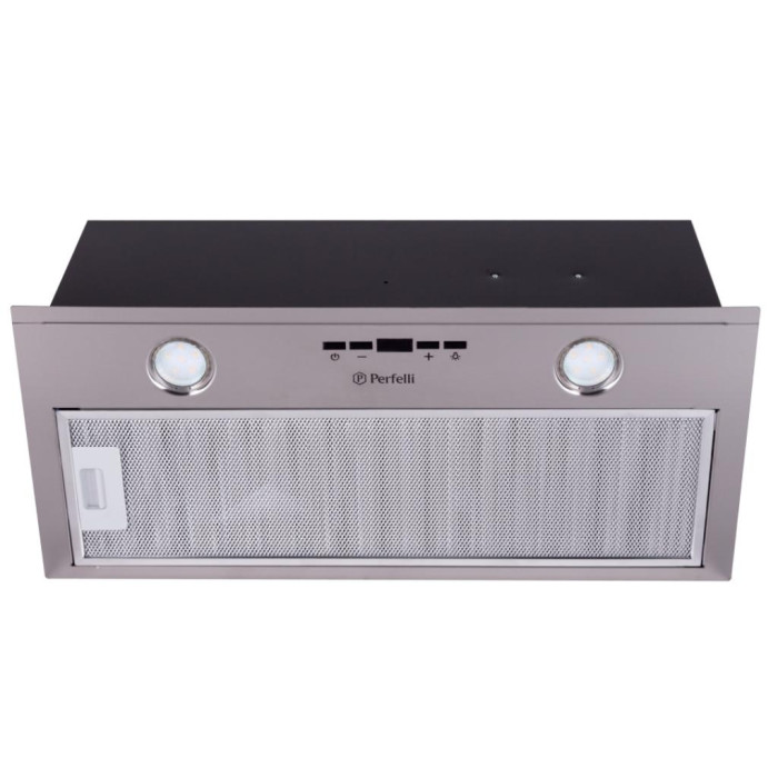 Perfelli BIET 6512 A 1000 LED оснащена электронной панелью управления на которой размещены клавиши «+» и «-», они отвечают за переключение скоростей работы прибора, а также клавиши включения вытяжки и дополнительного освещения. Кроме того, наличие функции таймера, а также пульта дистанционного управления значительно облегчает процесс работы с прибором.