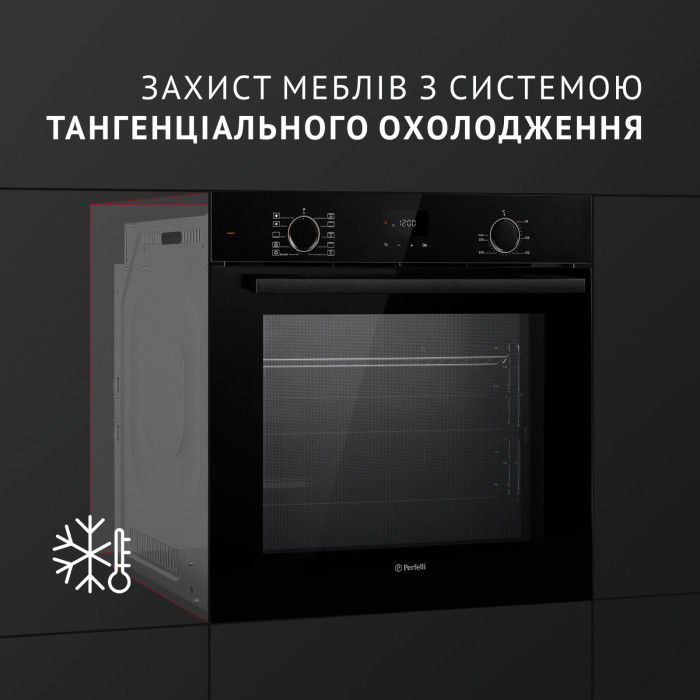 Тангенциальное охлаждение, в свою очередь, позволяет снизить температуру стекла дверцы, что уменьшает риск ожогов при касании к ним и обеспечивает более безопасный и комфортный процесс приготовления пищи.