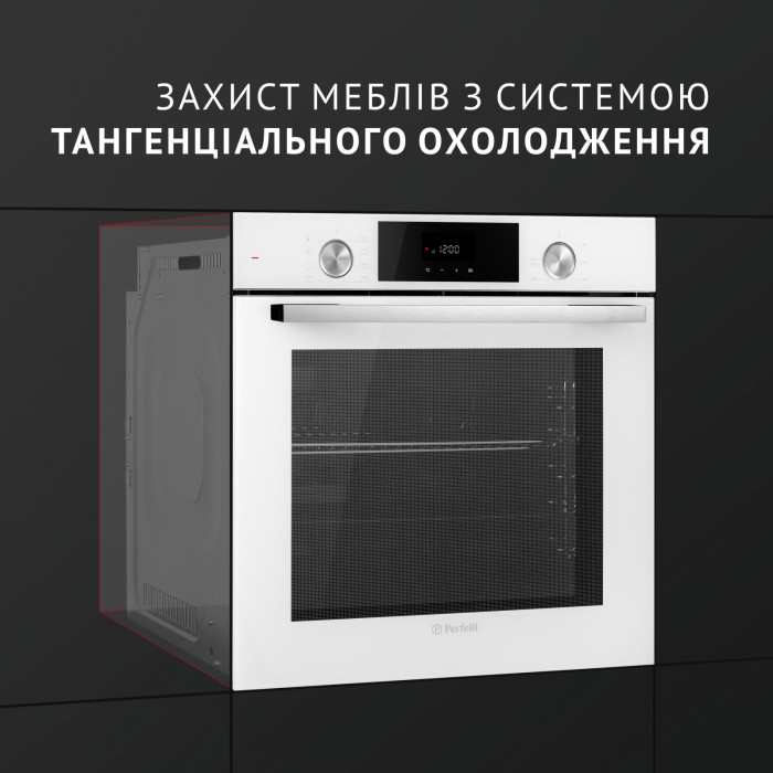 Тангенциальное охлаждение, в свою очередь, позволяет снизить температуру стекла дверцы, что уменьшает риск ожогов при касании к ним и обеспечивает более безопасный и комфортный процесс приготовления пищи.