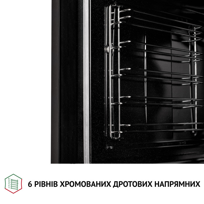 Съемные направляющие из хромированной стали позволяют обеспечить легкий доступ к блюдам и их удобное размещение. Они расположены на 6 уровнях, которые позволяют обеспечить равномерный нагрев блюда и размещать посуду разного размера и формы.