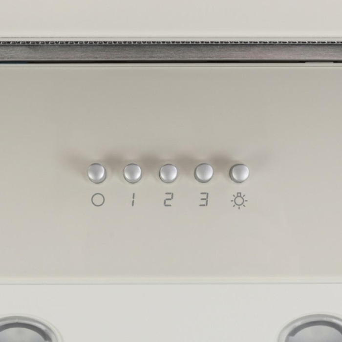 Декоративная кухонная вытяжка Perfelli DN 6452 D 850 LED оснащена механической панелью управления. На панели управления прибора размещены пять кнопок, которые отвечают за переключение скоростей работы, а также включения дополнительного освещения.