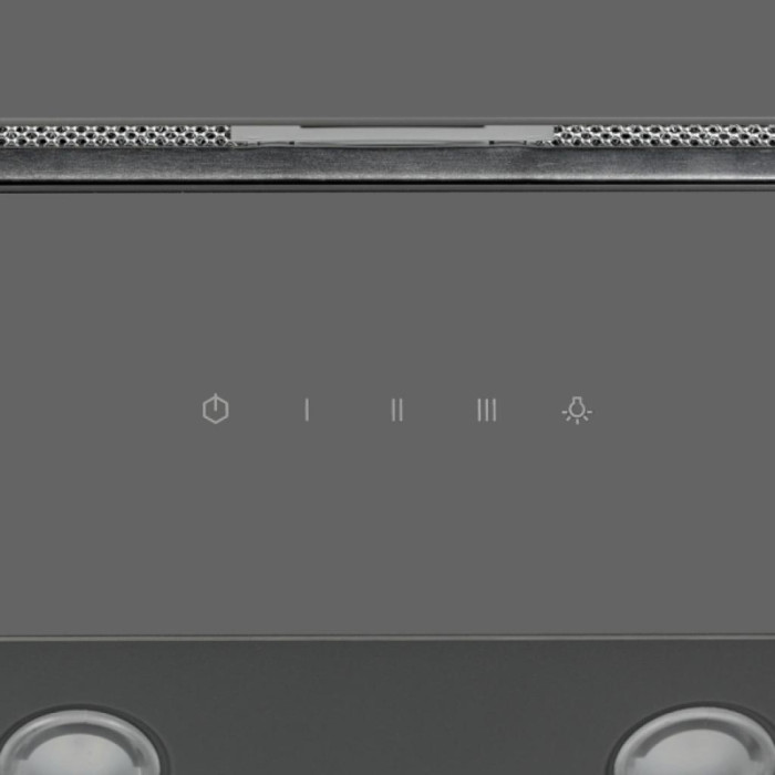 Декоративная кухонная вытяжка Perfelli DNS 6452 D 850 LED оснащена сенсорное панелью управления. На панели управления прибора размещены пять кнопок, которые отвечают за переключение скоростей работы, а также включения дополнительного освещения.