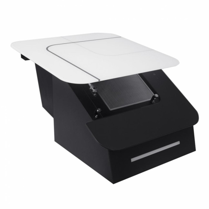 Вытяжка работает как в режиме отвода, так и в режиме рециркуляции воздуха. Максимальная производительность в режиме отвода 1100 куб. м/ч, что позволяет полностью очистить воздух в кухонном помещении.