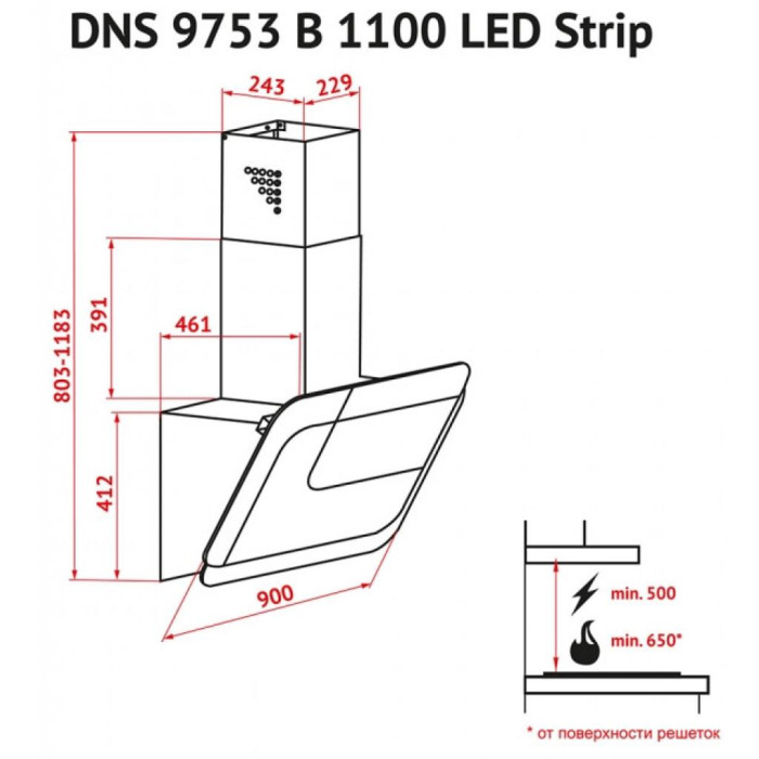 Вытяжка кухонная Perfelli DNS 9753 B 1100 WH/BL LED Strip