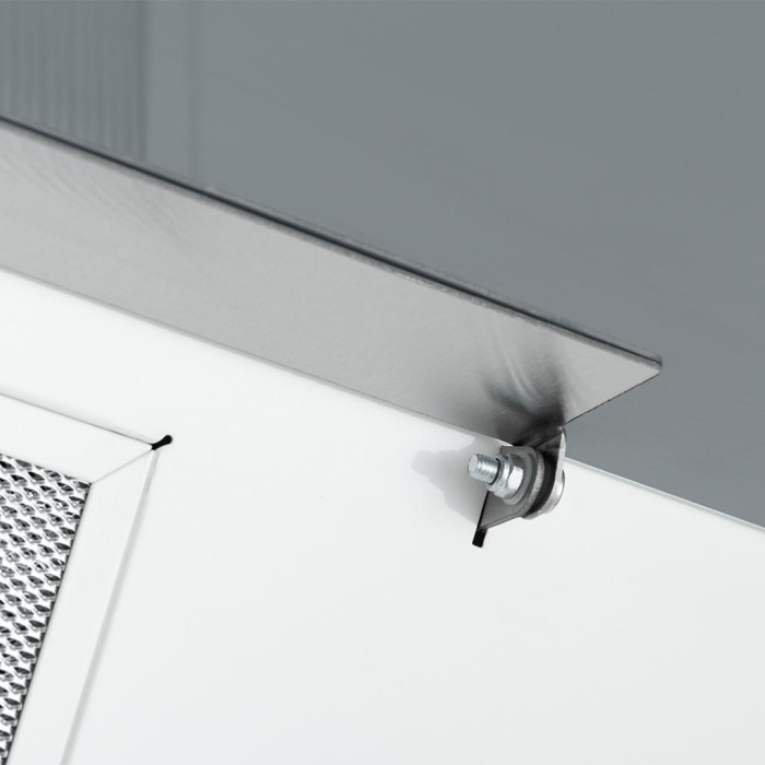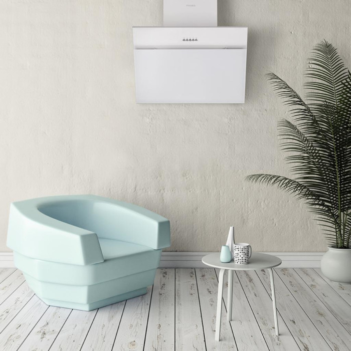 Вытяжка Pyramida NR-MG 60 (1000) M WH сделана в плоском настенном варианте, который предусматривает конструкцию с возможностью наклона основной панели. Ее створки имеют горизонтальную конструкцию. Сам корпус выполнен из металла, а дверцы – из закаленного стекла. За счет такого сочетания фактур в целом изделие получилось очень интересным, т.к. оно не нуждается в каких-либо дополнительных акцентах, а является самодостаточным благодаря выбранным материалам и геометрическому форм-фактору.