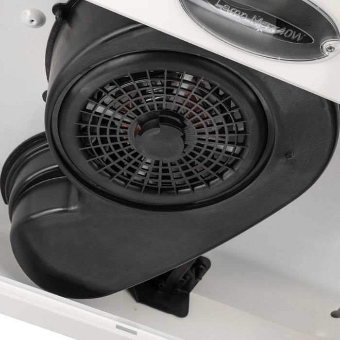 Pyramida UX 60 работает в режимах отвода и рециркуляции. В режиме отвод вытяжка полностью выводит загрязненный воздух наружу через воздухоотвод. В режиме рециркуляции вытяжка прогоняет воздух по очистительным фильтрам и подает его обратно в помещение. Максимальная продуктивность вытяжки составляет 320 м3. Такую производительность устройства обеспечивает потребляемая мощность мотора в 80 Вт. Продуктивность обеспечивает эффективную работу для 15 м2 площади помещения.