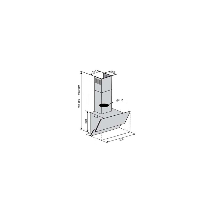 - Производительность двигателя 450 м.куб, поэтому вытяжка под наклоном предназначена для небольших помещений.