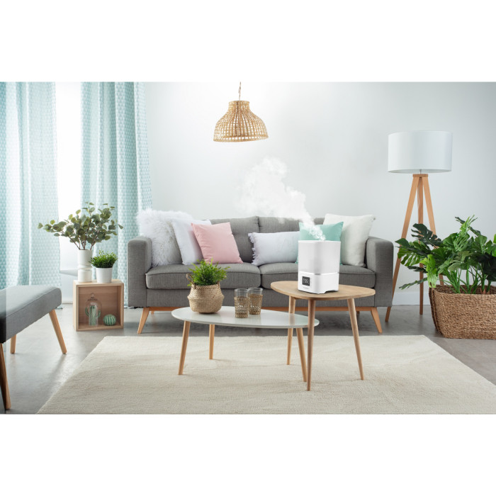Мощная производительность тумана 380 мл/ч обеспечивает быстрое увлажнение, а ориентированные на 360° отверстия для выпуска воздуха обеспечивают равномерное действие по всей комнате. Благодаря этому он подходит как для малых, так и для больших помещений до 50 м2.