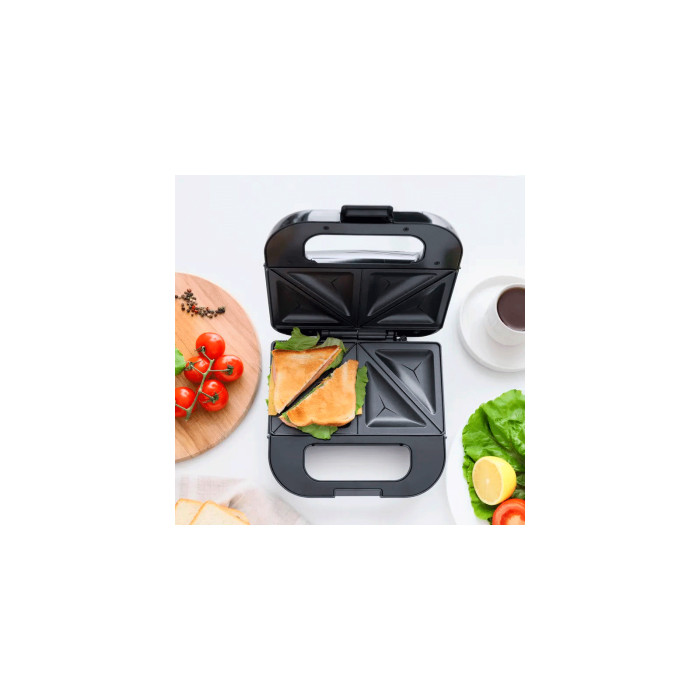 Бутербродниця MG-375 має всі необхідні функції, щоб швидко приготувати смачні та поживні сендвічі. Одночасно в ній можна випікати відразу по 4 сендвічі, краї яких щільно спаюють борти форм, надійно замикаючи начинку всередині. Корпус виготовлений із висококласного термостійкого пластику чорного кольору. Тип листа - підсмажений сендвіч у формі трикутників. Нагрівальний елемент потужністю 750 Вт забезпечить швидке і рівномірне нагрівання двох робочих поверхонь з антипригарним покриттям. Бутербродниці Magio дуже зручні у користуванні, сендвічі не пригорають і легко витягуються. Завдяки компактним розмірам та фіксатору бутербродницю зручно зберігати. На кришці є світлові індикатори живлення та готовності до роботи, що полегшує контроль процесу приготування