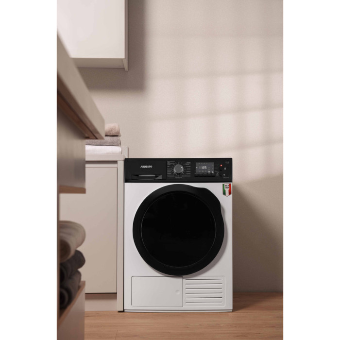Сушильна машина ARDESTO Bianco Vero може похвалитися прогресивною системою конденсаційного сушіння за допомогою теплового насоса Heat-Pump із холодоагентом R290, високою місткістю барабана, а також низьким електроспоживанням, що відповідає класу A++. Сушарку обладнано потужним двигуном PSC. Пристрій виконує 15 програм сушіння: бавовна, інтенсивне сушіння, синтетика, експрес, сорочки, рушники, джинс/кольорове, самоочищення, спортивні речі, делікатне сушіння, постільна білизна, вовна, мікс, програмування (гаряче), програмування (холодне). На додачу, є відкладений старт