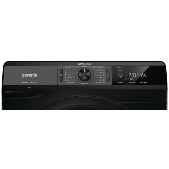 відкладений старт, блокування від випадкового натискання, звуковий сигнал, вибір ступеня сушіння, фільтр легкого очищення, захист від м'яття, індикація часу, що залишився, половинне завантаження