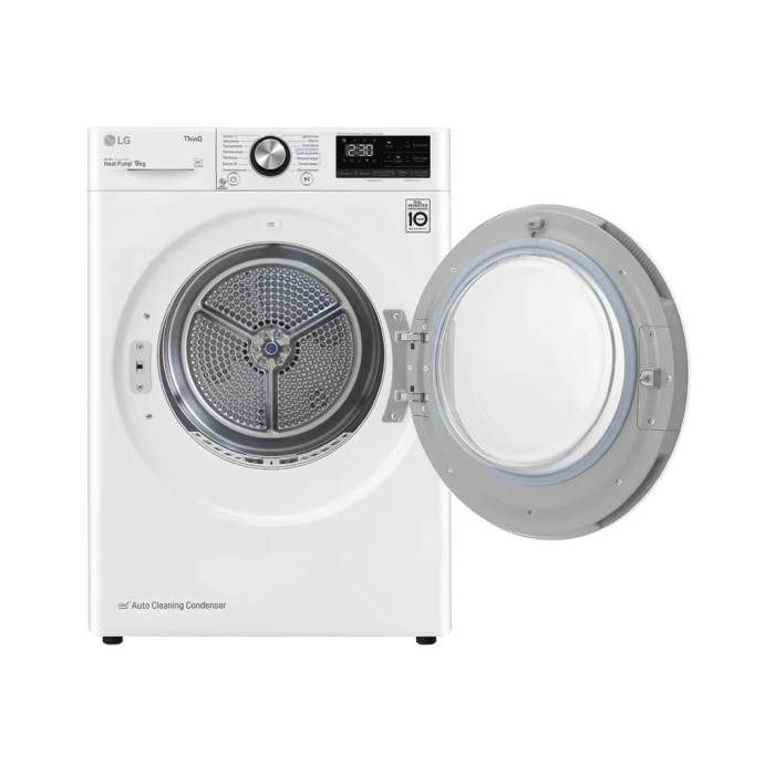 Тепловий насос сушильної машини LG DC90V9V9W якісно і дбайливо висушує речі, споживаючи при цьому мінімум електроенергії. Машина використовує двосторонній інверторний компресор, який споживає менше електроенергії, працює практично безшумно і забезпечує чудовий результат.
