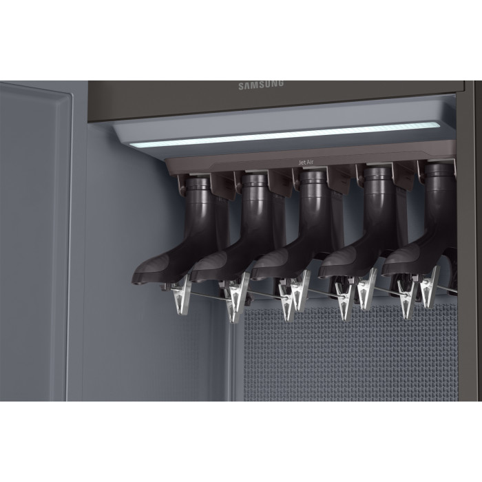 Завдяки системі потужних повітряних потоків Jet Air та спеціальним повітряним вішалкам Air Hangers одяг повністю продувається зсередини назовні та у двох напрямках – вгору та вниз. Така система ефективно усуває глибокий пил з тканин практично безшумно і без вібрації! Це максимальний еквівалентний рівень безперервного шуму LEQ з передньої, бічної та задньої сторін. Випробування проводилися в кімнаті без ехо на відстані 1 м від продукту. Індивідуальні результати можуть відрізнятися в залежності від фактичної ситуації використання.