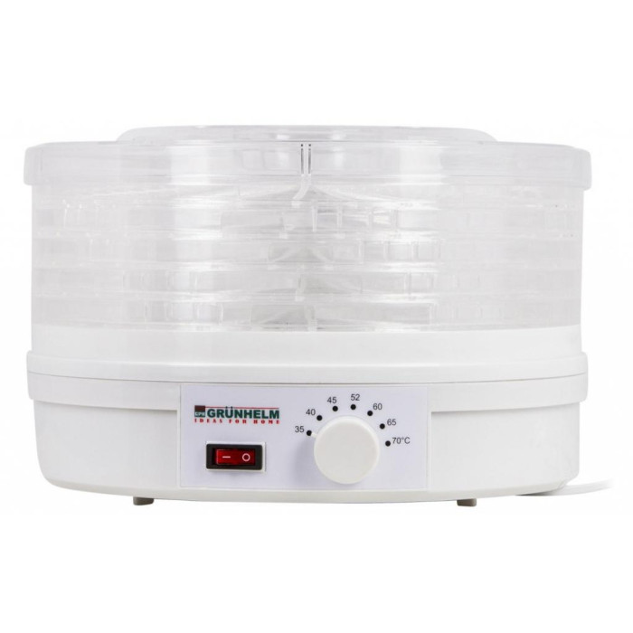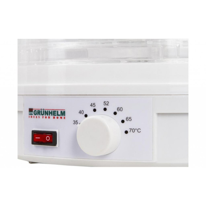 Сушарка GRUNHELM ідеальний пристрій для тих хто піклується про заготівлю продуктів на зиму. Це один з найбільш ефективних, простих і економічних сушильних агрегатів. Має захист від перегріву, завдяки вбудованому мікропроцесору.