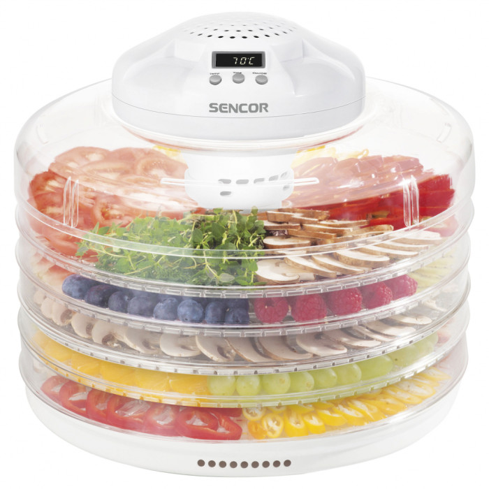 Сушка для фруктів та овочів Sencor SFD 4235WH не обмежується тільки згаданими типами продуктів. Цей пристрій відмінно адаптовано для грибів, зелені, трав, м'яса. Таким чином ви зможете зробити заготовки, які зберігаються значно довше, ніж свіжа їжа, а також набувають приємного смаку, який високо цінується гурманами. Збереження всіх корисних властивостей при застосуванні сушильного пристрою залишається на висоті.