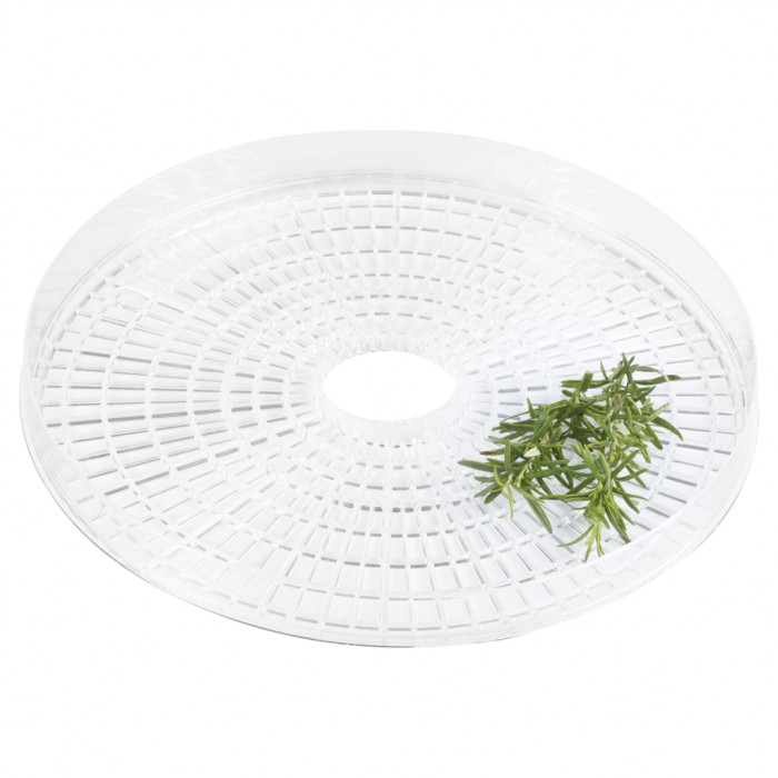Розмістіть порізані шматочки на піддонах, які утворюють собою 5 рівнів. Вони мають перфораційну структуру з отворами, які допомагають повітрю всебічно проникати до кожного шматочка. Діаметр піддону дає можливість розмістити досить багато їжі, при цьому не займати сушильним пристроєм занадто багато місця.