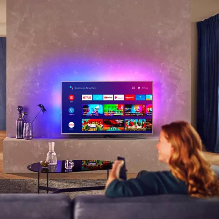 Цей телевізор — саме те, що ви шукали. Приголомшлива якість зображення, елегантний дизайн, чудовий звук, керування голосом за допомогою ІІ й Ambilight, що забезпечує ефект занурення, який ви більше ніде не знайдете. Цей телевізор — це все, що вам потрібно для перегляду кіно, спорту або ігрового марафону у вихідні.