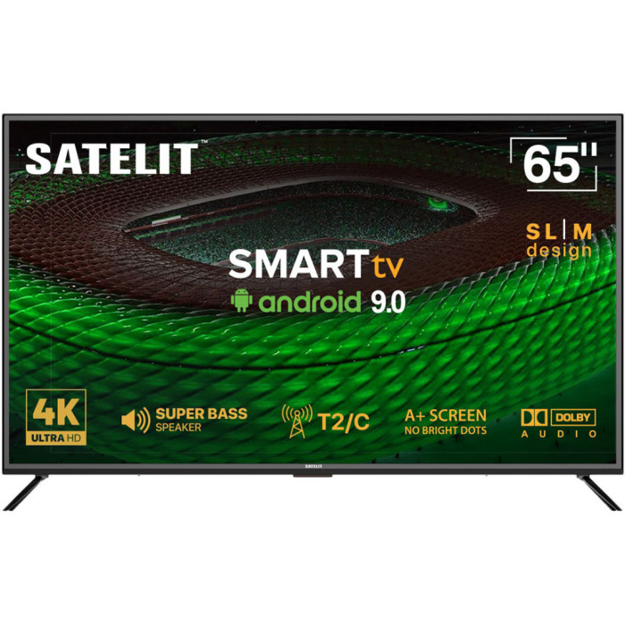 ТБ Satelit 65U8000ST оснащений Smart-Tv, а значить, надає необмежений доступ до мережі інтернет. Смарт-складова моделі базується на відкритій платформі Android 9.0 версії. За допомогою вбудованого браузера та доступного магазину програм, перед Вами відкривається можливість відвідування соцмереж, інтернет серфінг, перегляд фільмів та відео онлайн, скачування програм та ігор. На додаток, Satelit 65U8000ST здатний приймати сигнал аналогової та цифрової мереж, за допомогою Т2 тюнера та транслювати ефірні телеканали. За допомогою повного набору необхідних портів (HDMI, VGA, USB) існує можливість підключення зовнішніх пристроїв і трансляції медіаконтенту з комп'ютера або смартфона.