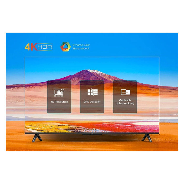 Покращена контрастність, кольори та деталізаціяНайновіший стандарт для контенту 4K UHD - це широкий динамічний діапазон. Він значно розширює діапазон як контрастності, так і кольорів. HDR точно відтворює світлі і темні відтінки з точними кольорами і сліпучою деталізацією зображення. Телевізор TCL P638 серії 4K HDR оснащений підтримкою HDR10 і HDR Dolby Vision, щоб ви могли насолоджуватися яскравішим світлом, темнішою темрявою зі збереженням усіх найдрібніших деталей.HDR: покращена контрастність, кольори та деталізаціяРозроблена ексклюзивно компанією TCL, функція динамічного покращення кольору призначена для автоматичної оптимізації яскравості кольорів. Запатентований алгоритм розширює традиційні обмеження палітри, забезпечуючи більш яскраве відео преміум-класу. Він постійно аналізує відеосигнал і динамічні розрахунки, щоб передати більшість відтінків кольорів так, як задумав режисер фільму. Багате покращення кольору зберігає відтінки шкіри та розширює деталі тіней, забезпечуючи якість зображення, подібну до HDR.Чіткість руху для плавного зображення та покращеного рухуПід час швидких рухів ви не хочете пропустити жодної деталі. Запатентований програмний алгоритм MEMC TCL бере на себе відповідальність під час перегляду спортивних подій або динамічних шоу чи фільмів. Допомагає зменшити розмиття зображення в русі та звести до мінімуму сліди руху. Ваш перегляд завжди буде кришталево чистим, незалежно від джерела - 50 Гц або 60 Гц.Приголомшливе HDR незалежно від джерелаІснує багато способів отримати найкращу якість зображення 4K HDR на телевізорі: HDR10, HDR HLG, HDR Dolby vision. Цей телевізор TCL підтримує їх усі! Переконайтеся, що ви можете повністю використати максимальну потужність вашого телевізора 4K HDR: незалежно від того, чи насолоджуєтеся ви контентом Dolby Vision на Netflix, Disney+ або HDR 10 на Amazon Prime Video, цей телевізор 4K HDR TCL завжди буде підтримувати найкращий формат.Ваш оптимізований ігровий досвідДля геймерів чуйний телевізор так само важливий, як і гарне зображення. HDMI 2.1 забезпечує сумісність з останніми поколіннями ігрових консолей і підтримує такі функції, як ALLM (режим автоматичної низької затримки). ALLM дозволяє ігровій консолі або відеокарті ПК автоматично перемикати телевізор в ігровий режим для надшвидкої затримки вхідного сигналу в іграх нижче 15 мс.Захоплюючий, рухомий звук навколо вас.Звук ще ніколи не звучав так добре. Відчуйте глибший зв'язок з улюбленими історіями та музикою завдяки звуку, який рухається навколо вас із захоплюючим реалізмом. Фільми та ТБ: Відчуйте сильніший зв'язок з героями, транслюючи улюблені шоу та фільми у форматі Dolby Atmos. Музика: Відчуйте себе всередині улюблених пісень і відкрийте для себе нові елементи музики. Ігри: Точно визначайте звуки з тривимірною точністю і швидше реагуйте в улюблених іграх. Dolby Atmos реалістично передає рух кожного об'єкта і відтворює об'ємний звук на 360º. Разом із якістю зображення Dolby Vision™ це створює справді кінематографічні враження.Розваги, які ви любите. З невеликою допомогою від Google.Google TV об'єднує фільми, шоу, телепередачі та багато іншого з усіх ваших програм і підписок і організовує їх спеціально для вас.Познайомтеся зі своїм Google АсистентомСтавте йому запитання. Наказуйте йому щось робити. Це ваш особистий Google, завжди готовий допомогти з більш ніж 1 мільйоном дій. Запитуйте його про що завгодно. Нак