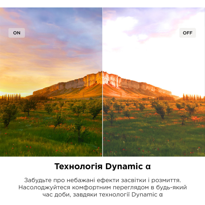 Забудьте про небажані ефекти засвітки і розмиття. Технологія TCL Dynamic α визначає параметри зображення в кожній локальній зоні затемнення в даному моменті часу, запобігаючи надмірній яскравості і зменшуючи розмиття при низькій якості зображення. Насолоджуйтеся комфортним переглядом в будь-який час доби.