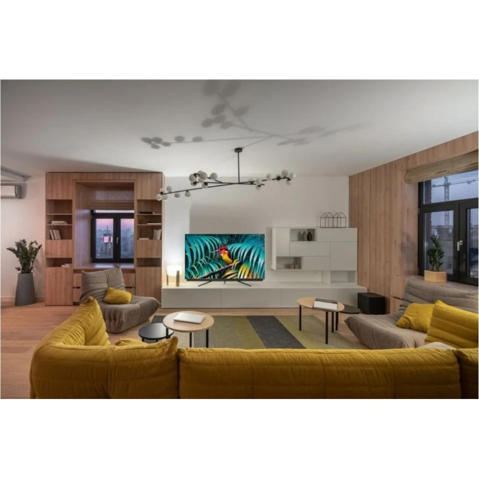 Без рамки на передній панелі для більшого екрану і більшої кількості улюбленого зображення. У цій ультратонкой дизайнерської концепції використовується справжній метал, що робить його не тільки елегантним предметом ручної роботи, але і довговічним, який впишеться в ваш житловий простір. Красиво і зручно: розкішний металевий дизайн серії C81 оснащений інноваційної центральної підставкою на трьох ніжках, яка створює ефект польоту телевізора і дозволяє розмістити цей великий екран навіть в обмеженому просторі будинку. Непідвладний часу зразок художнього дизайну, який ідеально вписується в ваш житловий простір.
