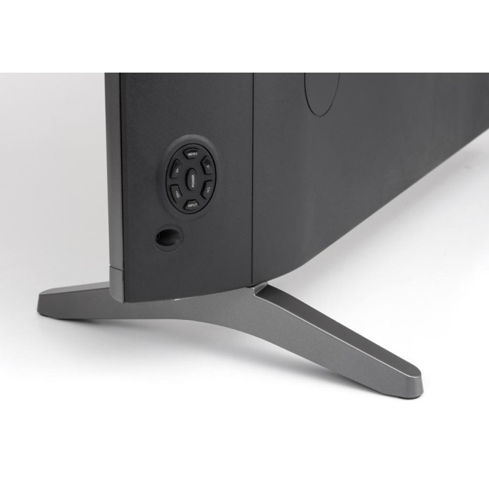 Монтувати пристрій можна і за допомогою системи кронштейнів VESA - вона універсальна і підходить для будь-якої стіни. У наборі разом з телевізором йдуть гвинти для кріплення, ніжки підставки, батарейки для пульта і сам пульт. Пульт, як і телевізор, має матовий темний корпус. Для зручності користування девайсом на задній спинці пульта є спеціальні виїмки для пальців.