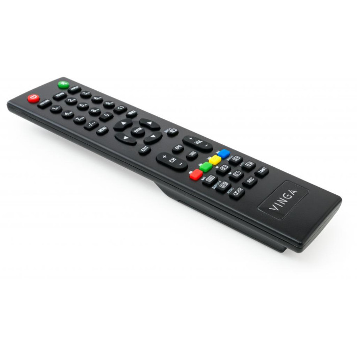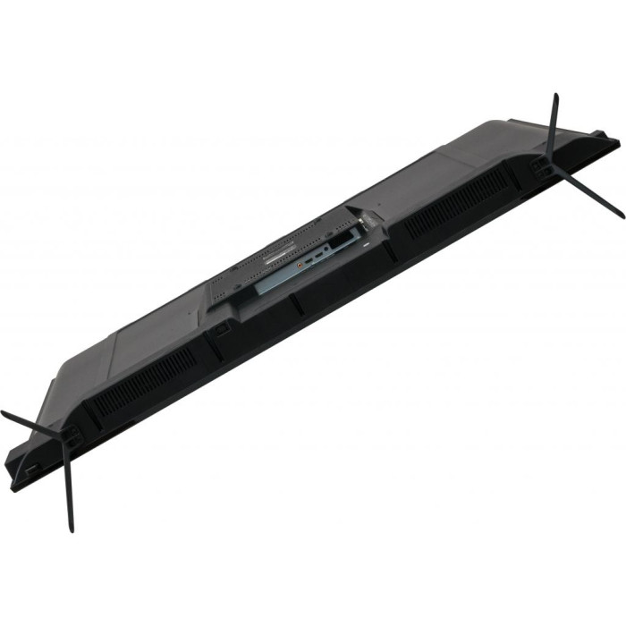 Монтувати пристрій можна і за допомогою системи кронштейнів VESA - вона універсальна і підходить для будь-якої стіни. У наборі разом з телевізором йдуть гвинти для кріплення, ніжки підставки, батарейки для пульта і сам пульт. Пульт, як і телевізор, має матовий темний корпус. Для зручності користування девайсом на задній спинці пульта є спеціальні виїмки для пальців.