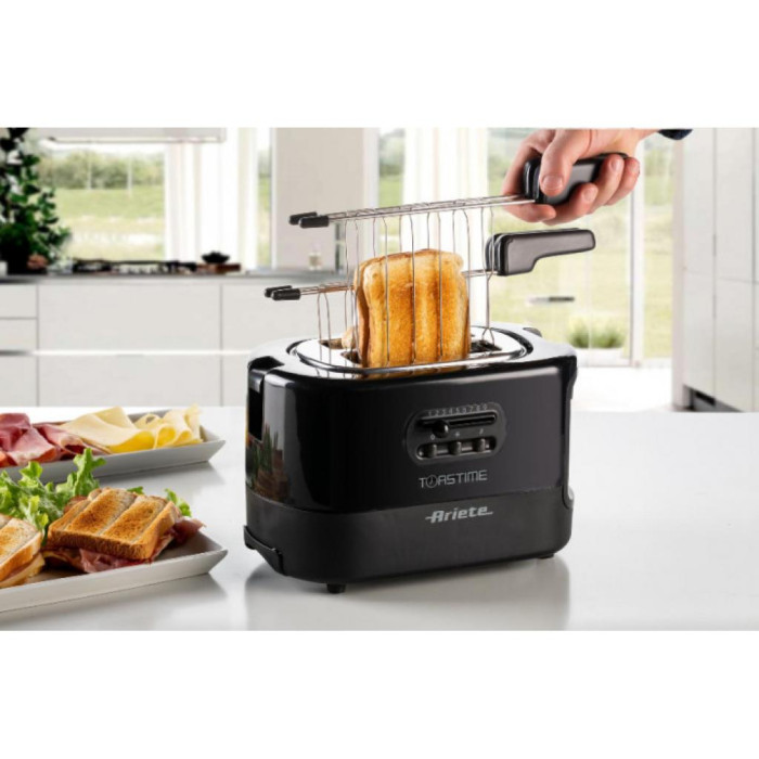 Ariete 0159 тостер з щипцями з нержавіючої сталі і 9 рівнями рум'янцю, ідеально підходить для приготування сніданків, закусок і бутербродів з начинкою. Функції розморожування і підігріву разом з вбудованою решіткою для п... Читати далі...
