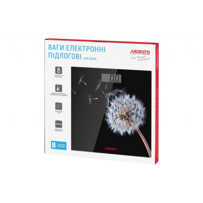 Ваги оснащені високоточним електронним механізмом. Максимальна вага для вимірювання – 150 кг, з дискретністю у 50 г. Для відображення результатів є контрастний світлодіодний дисплей, керування – сенсорне, а для живлення використовується два елементи формату AAA.