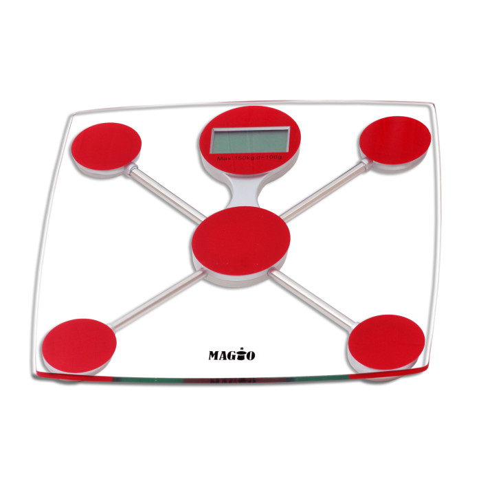 Квадратна основа з полірованого скла ваг Magio MG-301 має дуже привабливий зовнішній вигляд, а його неймовірна міцність дозволить надовго продовжити термін експлуатації. Результати зважування будуть відображатися на спеціальному рідкокристалічному дисплеї, який розташований на верхній панелі ваг для більш зручного перегляду даних.