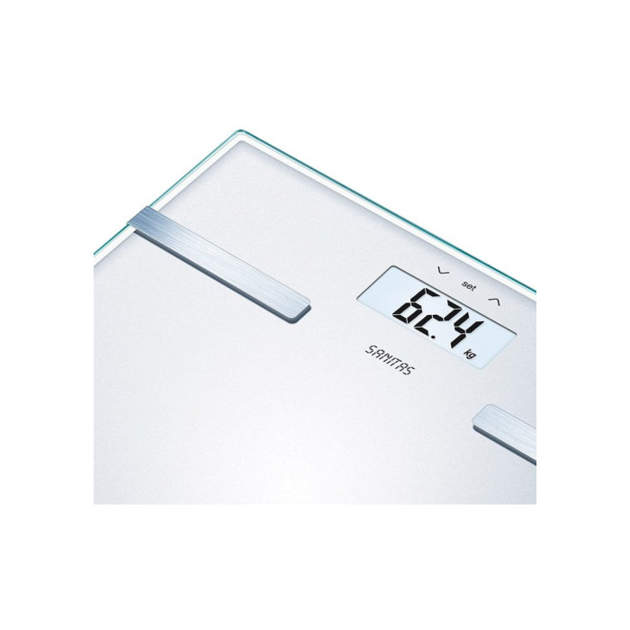 Діагностичні ваги Sanitas SBF 14 визначають вагу тіла, % внутрішнього жиру, % тканинної рідини, % м'язової маси, масу кісток, ІМТ (індексу маси тіла). Значення зображаються на дисплеї одне за іншим.
