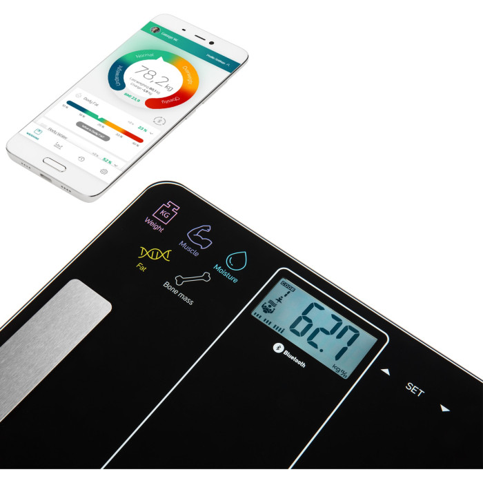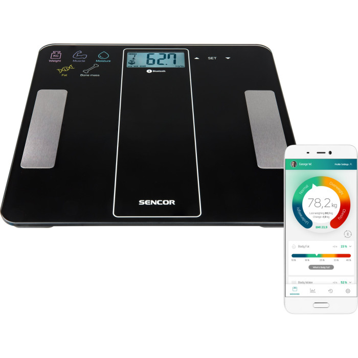 Ваги Sencor підлогові призначені для вимірювання ваги до 180 кг. Вони оснащені функцією підключення до смартфону, що дозволяє зручно відстежувати та аналізувати дані. Для живлення використовуються дві батареї типу ААА, забезпечуючи енергоефективну роботу. Ваги мають стильний чорний дизайн та виготовлені зі скла, що робить їх не тільки функціональними, але і естетично привабливими