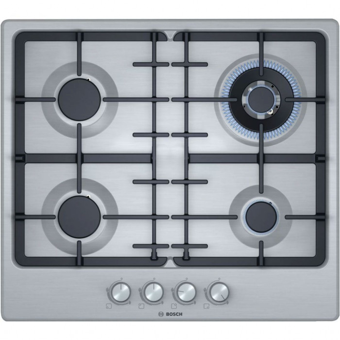 - Газова варильна поверхня з фронтальною панеллю управління: зручно керувати потрібними конфорками.