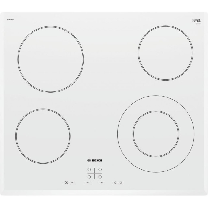 Купити плиту Bosch PKF652BB1E можна за дуже доступною ціною, товар знаходиться в низькому ціновому сегменті ринку. Поверхня плити виконана з стеклокерамического матеріалу, який може витримувати короткочасне підняття температури навіть до 900⁰С. Також, завдяки глянцевому поверхні плита легко миється і чиститься. Управління плитою абсолютно просте і ергономічне за допомогою сенсорної панелі управління.