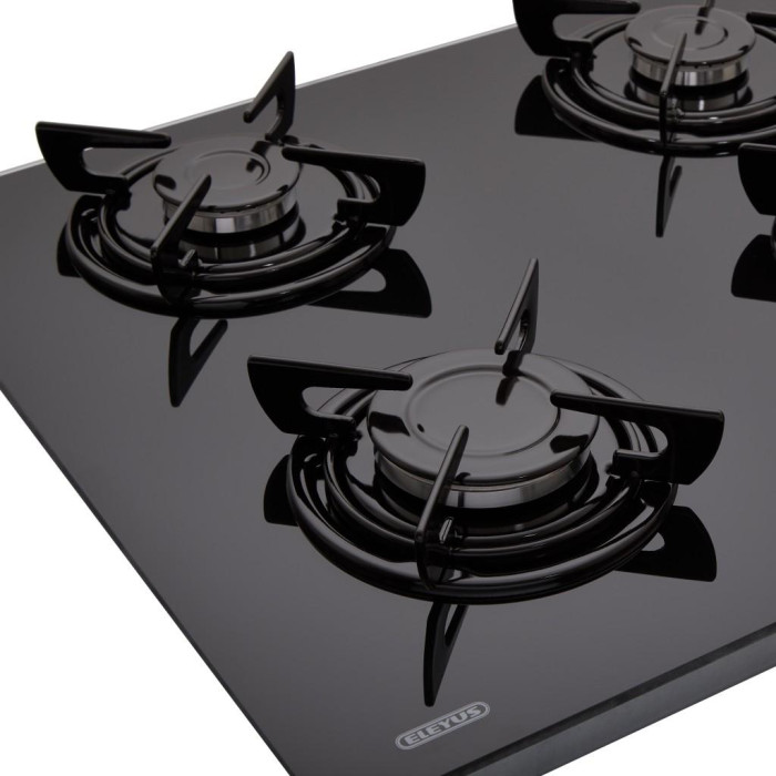 Сучасні газові поверхні ТМ ELEYUS — це гарантія безпеки вашого будинку. Газ-контроль вимикає подавання газу в разі випадкового загасання полум'я. Поверхня обладнана поворотними перемикачами з блокуванням, що унеможливлює випадкове вмикання приладу (для вмикання необхідно натиснути на перемикач і повернути його). Крім того, швидка конфорка розташована спереду ліворуч і частково висунута вперед, що дає використовувати посуд великих розмірів і захищає поверхню стіни від нагрівання Для підтвердження високої якості та безпеки у використанні всі газові варильні поверхні ТМ ELEYUS проходять чотирирівневий контроль герметичності з'єднань газової арматури на різних етапах виробництва.