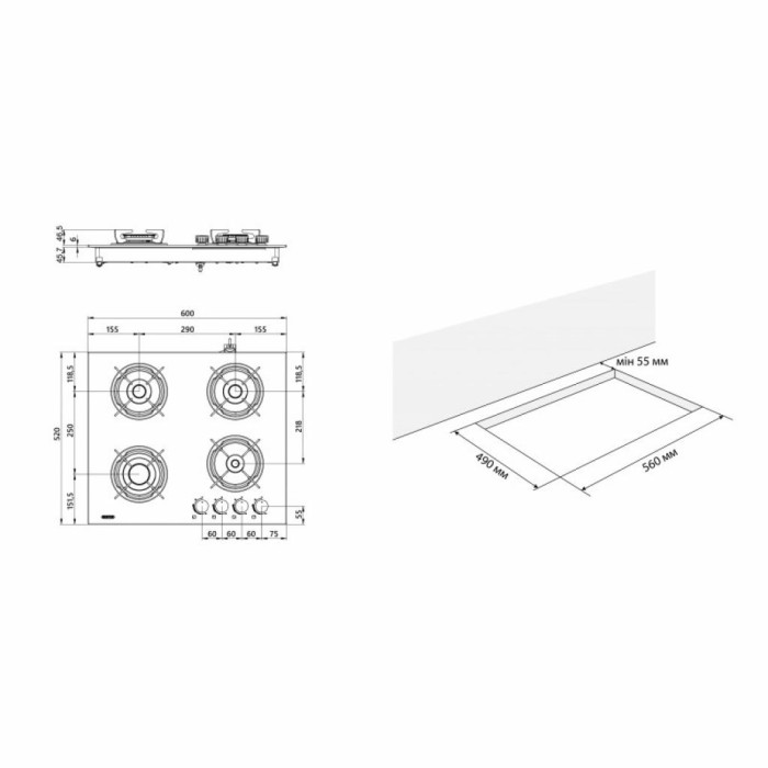 Електропідпал із керуванням у ручці робить користування приладом зручнішим. Для підвищення ергономічності приладу ручки керування розміщені в правій частині поверхні, на безпечній відстані від потужної конфорки. Ручки розміщені нижче рівня решіток, що унеможливлює їхній контакт із гарячим посудом і перешкоджає нагріванню.