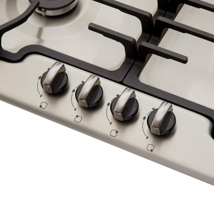 Безумовно, питання безпеки понад усе! Саме тому в поверхні доступна функція газконтролю – подача газу автоматично припиниться, якщо полум'я випадково згасне, що особливо важливо для Вашої безпеки. Поворотні перемикачі із блокуванням є важливим елементом газової варильної поверхні, адже унеможливлюють випадкове увімкнення (для увімкнення слід натиснути на перемикач та повернути його) і тим самим роблять користування приладом більш безпечним.