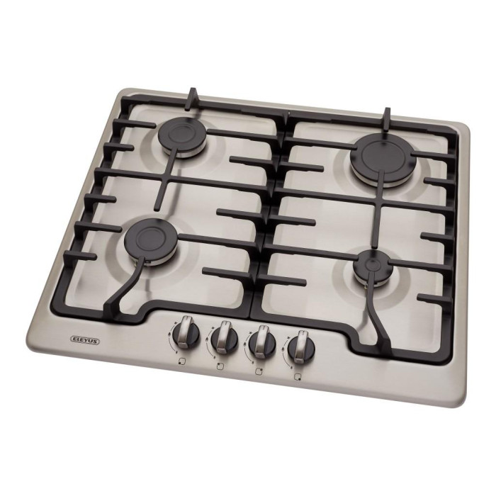Газова варильна поверхня ELEYUS GRACIA 60 IS CF обладнана чотирма конфорками: однією швидкою (2,5 КВт), двома напівшвидкими (1,7 КВт кожна) та однією допоміжною (0,9 КВт). Варто зауважити, що швидка конфорка розроблена таким чином, що її розташування та потужність убезпечують поверхню стіни від нагрівання. Електрозапалювання із керуванням в ручці робить користування приладом легким та невимушеним.
