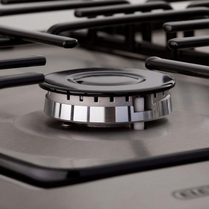 Варильна поверхня газова ELEYUS GRACIA обладнана чотирма конфорками: однією швидкою (2.5 кВт), двома напівшвидкими (1.7 кВт кожна) й однією допоміжною (0.9 кВт). Варто зауважити, що швидка конфорка розроблена у такий спосіб, що її розташування й потужність захищають поверхню стіни від нагрівання. Електропідпалювання із керуванням у ручці робить користування приладом легким і невимушеним. Пальники розташовані на поверхні так і на такій відстані, щоб ви могли використовувати улюблений посуд незалежно від його форм і розмірів. Підняті та розгорнуті до користувача ручки керування розташовані на так званому передньому «подіумі», що забезпечить повний комфорт у користуванні поверхнею. Ручки розташовані нижче від рівня решіток, що унеможливлює їхній контакт із гарячим посудом і запобігає нагріванню.