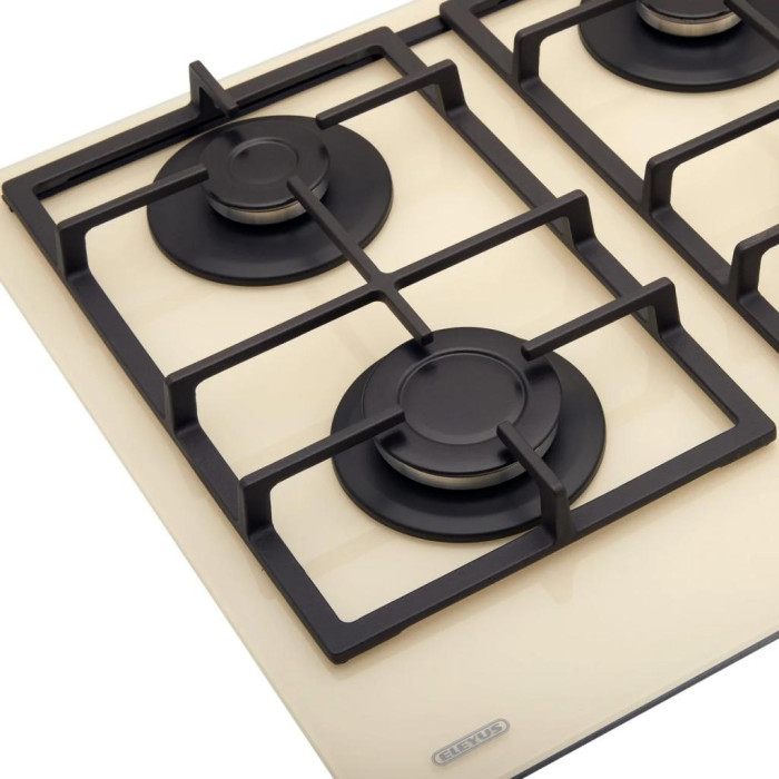 Сучасні газові поверхні ТМ ELEYUS — це гарантія безпеки вашого дому. Газ-контроль припиняє подавання газу в разі випадкового загасання полум'я. Поверхня обладнана поворотними перемикачами з блокуванням, що унеможливлює випадкове вмикання приладу (для вмикання необхідно натиснути на перемикач і повернути його). Крім того, швидка конфорка розташована спереду ліворуч і частково висунута вперед, що дає використовувати посуд великих розмірів і захищає поверхню стіни від нагрівання Для підтвердження високої якості та безпеки у використанні всі газові варильні поверхні ТМ ELEYUS проходять чотирирівневий контроль герметичності з'єднань газової арматури на різних етапах виробництва.