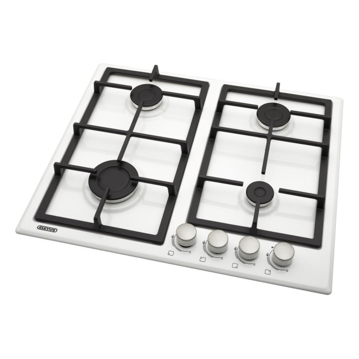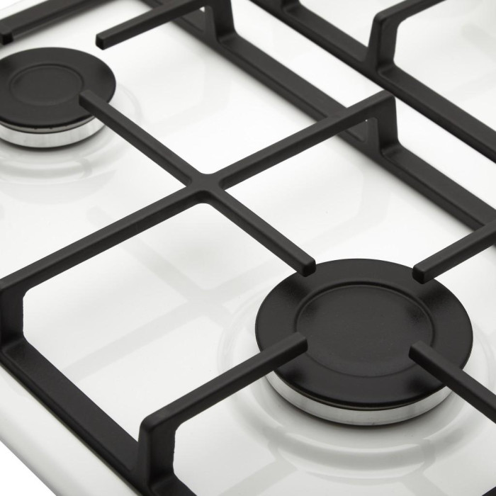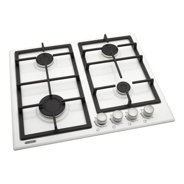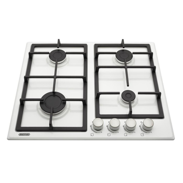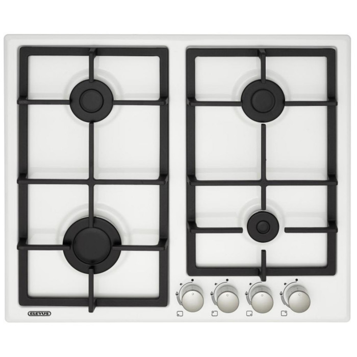 Газова варильна поверхня ELEYUS NIKA 60 WH CF обладнана чотирма конфорками: однією швидкою (3 КВт), двома напівшвидкими (1,75 КВт кожна) та однією допоміжною (1 КВт). Електрозапалювання із керуванням в ручці полегшує управліня приладом та робить його більш безпечним.