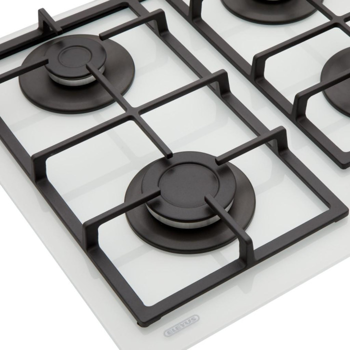 Варильна поверхня газова ELEYUS VITA 60 WH CF вироблена із загартованого скла, яке дуже просте в догляді та тривалий час зберігає естетичний зовнішній вигляд. Крім того, скляна поверхня має однаково гармонійний вигляд у різних інтер'єрах. Зворотний бік скла пофарбований високотемпературною керамічною фарбою. Варильна поверхня газова обладнана металевою решіткою зручного й ергономічного дизайну. Чавун легкий у догляді, витримує довготривалий вплив високих температур, тому слугуватиме Вам багато років.