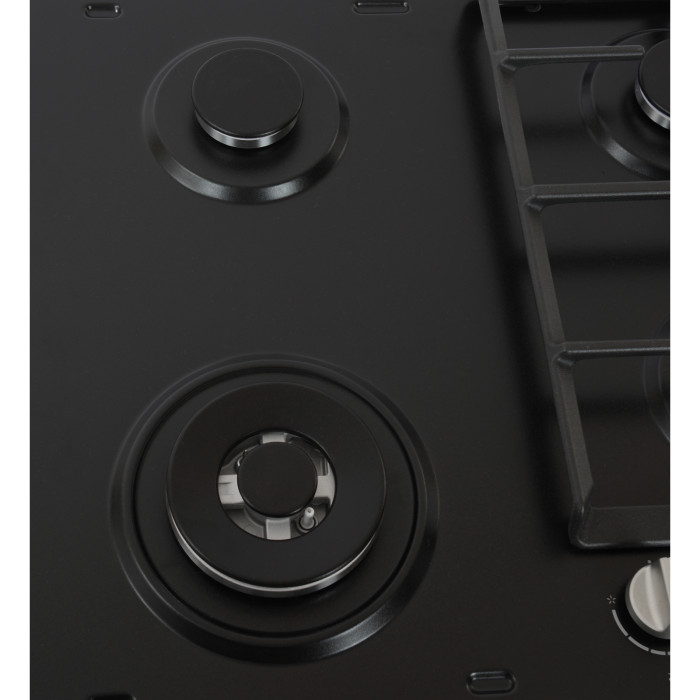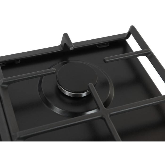 На просторій варильній поверхні зі збільшеною відстанню між пальниками помістяться каструлі та сковорідки будь-яких розмірів. Завдяки ергономічному плоскому дизайну ви можете з легкістю переміщати по поверхні навіть дуже об'ємні каструлі та водночас не побоюватися за їхню стійкість під час готування.