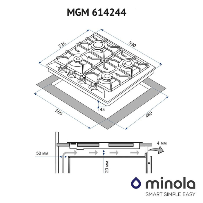 Газова варильна поверхня виготовлена у вигляді незалежної функціональної панелі.