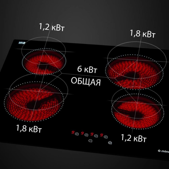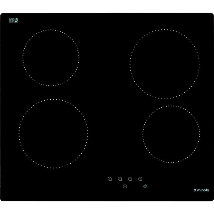 Склокерамічна варильна поверхня MINOLA MVH 6041 RBL з нагрівальними елементами типу Hi-Light виготовлена з твердої зносостійкої склокерамічної панелі, яка може зберігати високу механічну міцність і має хороші електричні характеристики ізоляції.