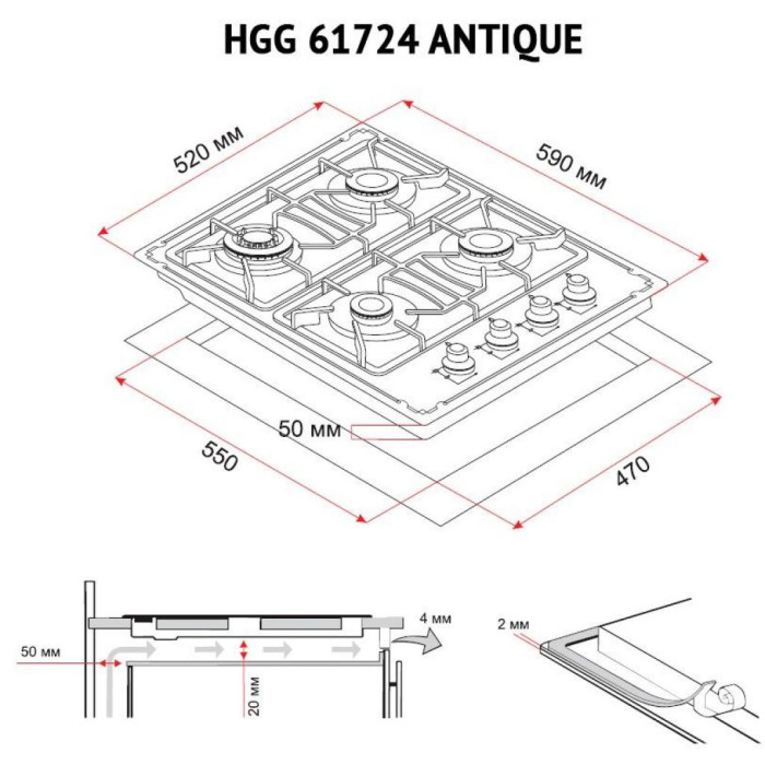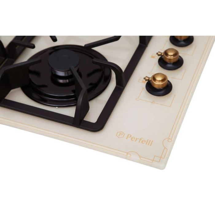 Незалежна газова варильна панель PERFELLI HGG 61724 IV ANTIQUE – максимально укомплектована поверхня, що відрізняється певною суворістю, цілісністю і гармонійною функціональністю.