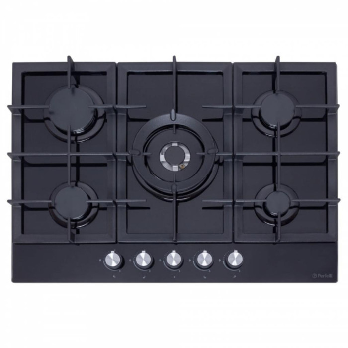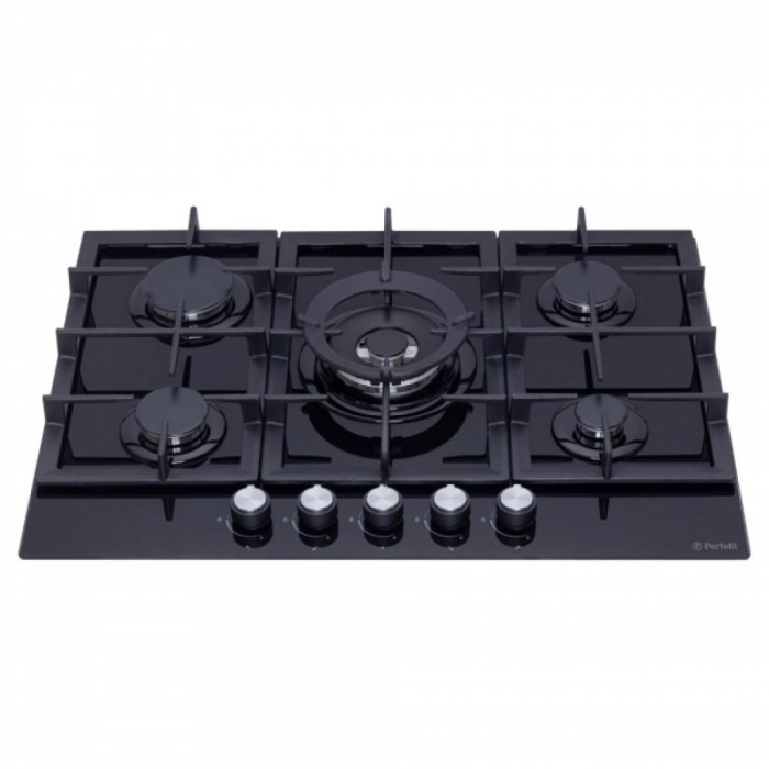 Незалежна панель Perfelli HGG 71624 обладнана п'ятьма потужними конфорками: однією двухконтурною WOK з потужністю - 3.8 кВт, однією потужною - 2.9 кВт, двома середньої потужності і однією допоміжною. Робоча поверхня газової панелі виготовлена з жароміцного загартованого скла.