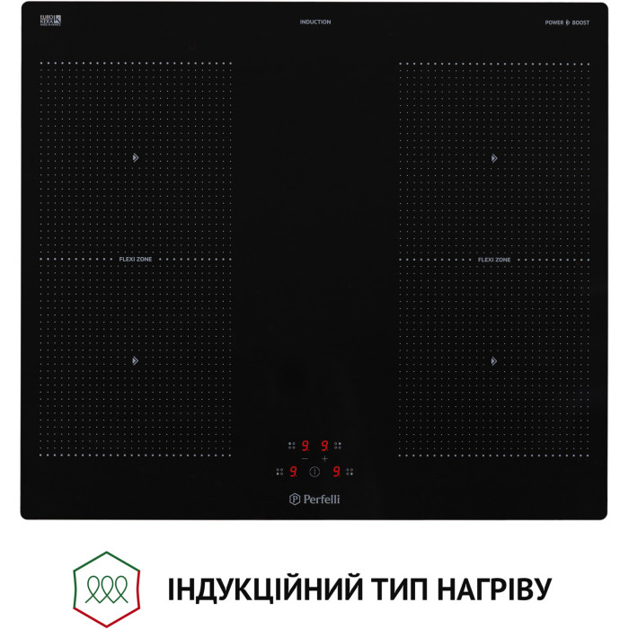 Варильна поверхня Perfelli HI 684 виготовлена у Франції! Її головна перевага – це висока якість та повна відповідність усім європейським стандартам. Ця поверхня універсальна для втілення будь-яких кулінарних ідей завдяки стандартній ширині – 59 см, чотирьом індукційним зонам нагріву діаметром 180 мм та потужністю 1400 Вт та інтелектуальної функції FLEXI ZONE, яка дозволяє перетворити всю ліву частину поверхні на одну суцільну зону нагріву.