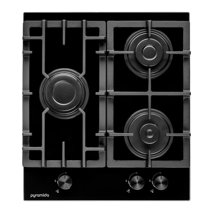 Чим точніше підібрана температура приготування смачного частування, тим кращим виходить результат. Тому в варильній поверхні Pyramida PFG 453 BL B встановлені 3 конфорки різного діаметру і потужності: 1-ша конфорка (велика): 2,9 кВт, 2а конфорка: 1,7 кВт, 3-тя конфорка: 0.9 кВт. Посуд великого діаметру або маленька каструлька, гасіння на слабкому вогні або прожарювання до хрусткої скоринки за дуже короткий час - якою буде ваша страва, обираєте ви. Нова варильна поверхня - це надійний помічник в кулінарних експериментах і приготуванні добре знайомих страв!